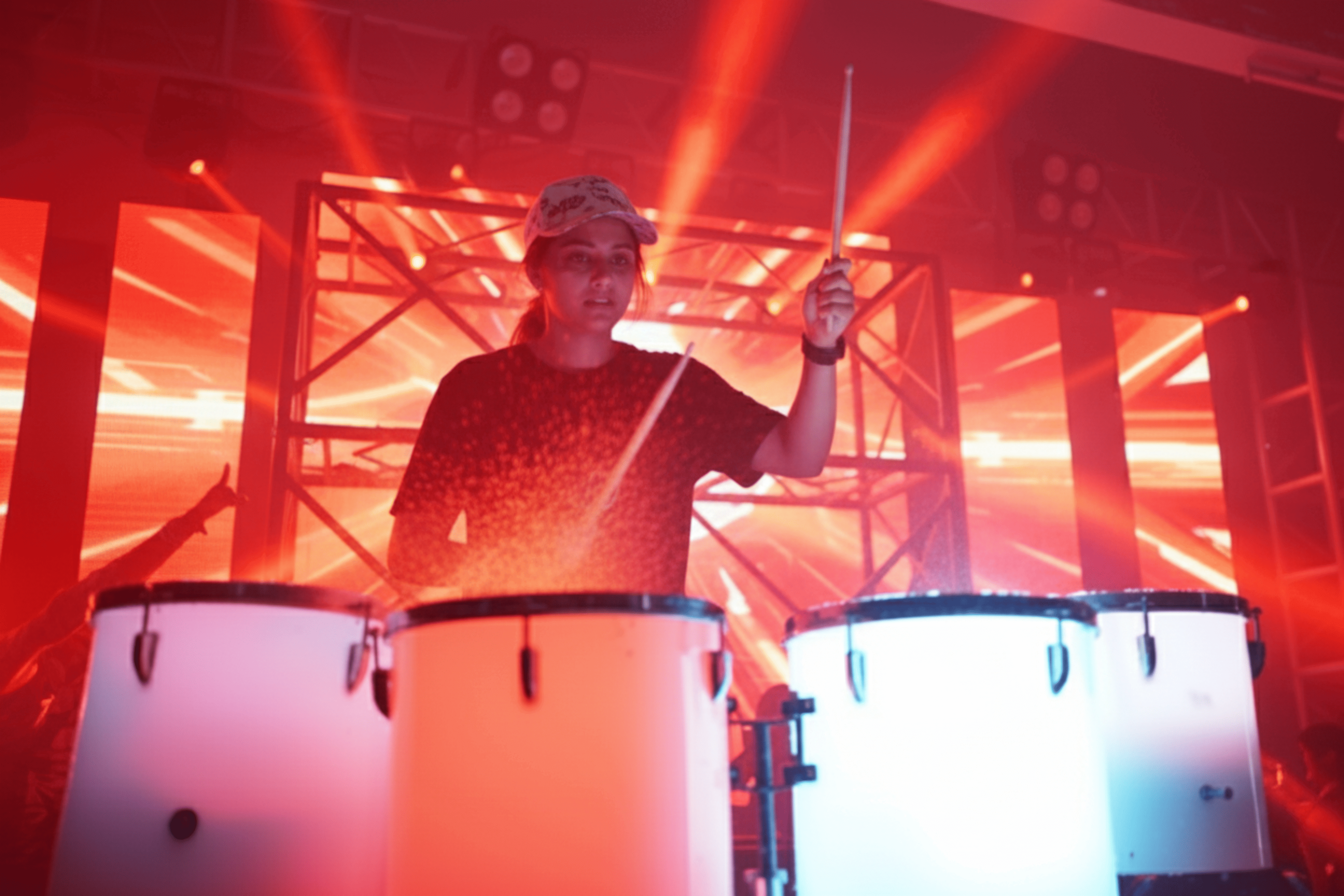 Experience a breathtaking performance of synchronized aerial drumming stunts featuring LED drums and vibrant colors