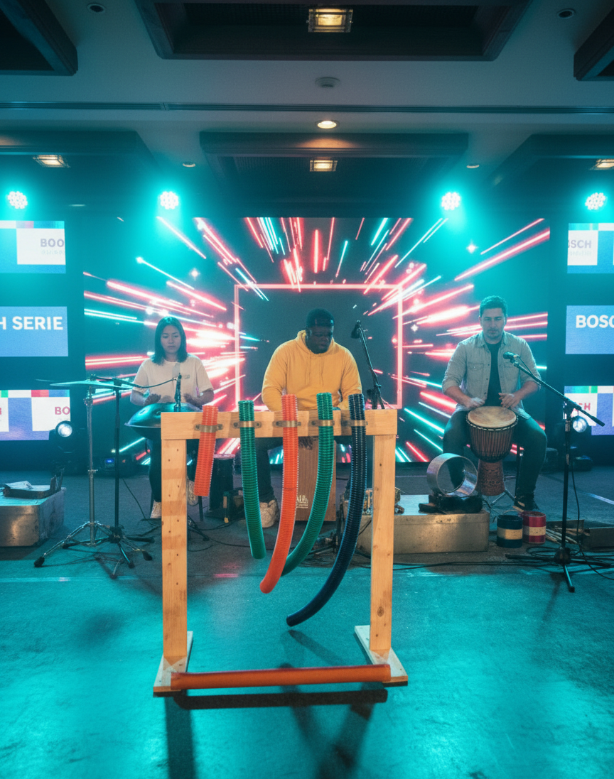 This innovative team-building activity transforms junkyard and recycled materials into unique musical instruments, crafted by the participants themselves